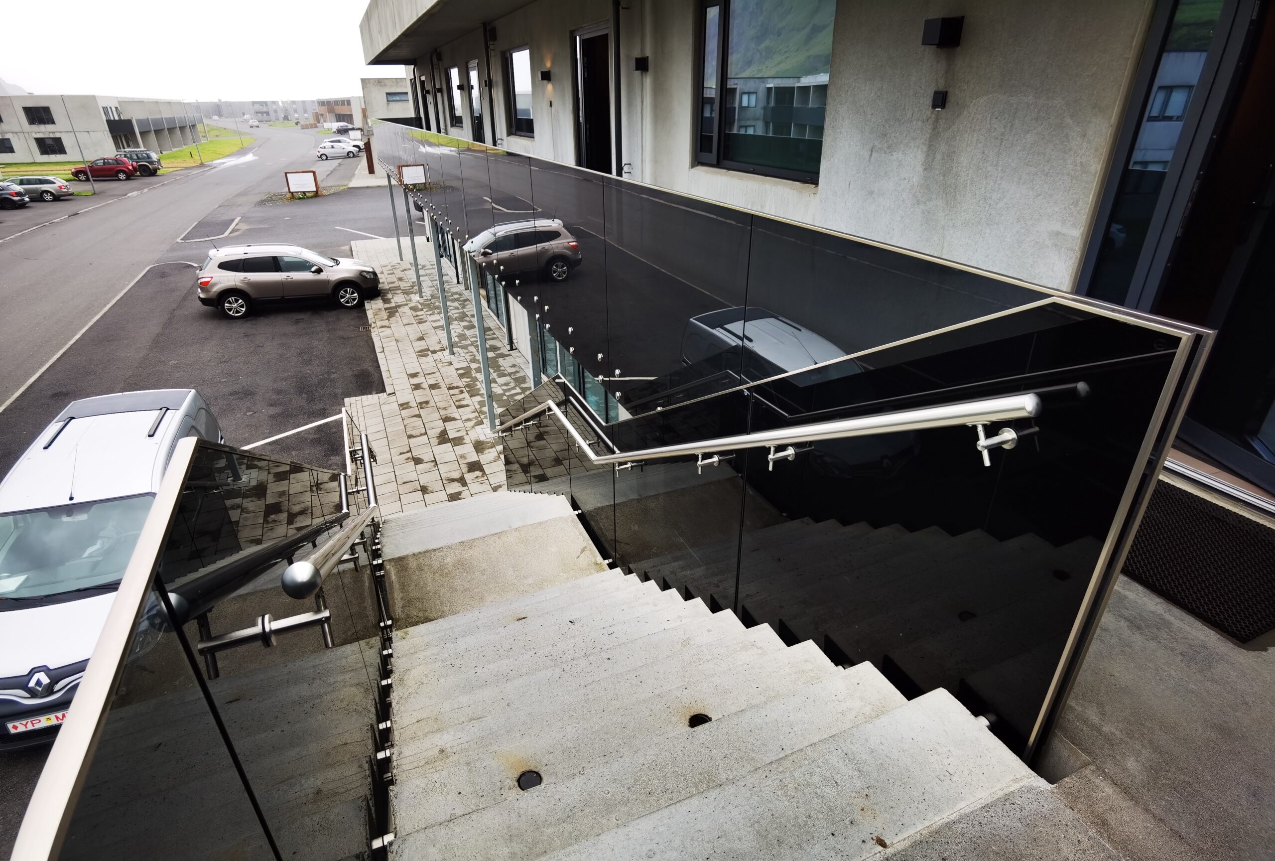 Stílhrein glerhandrið án stólpa fyrir svalir, svalaganga, stiga og palla.
