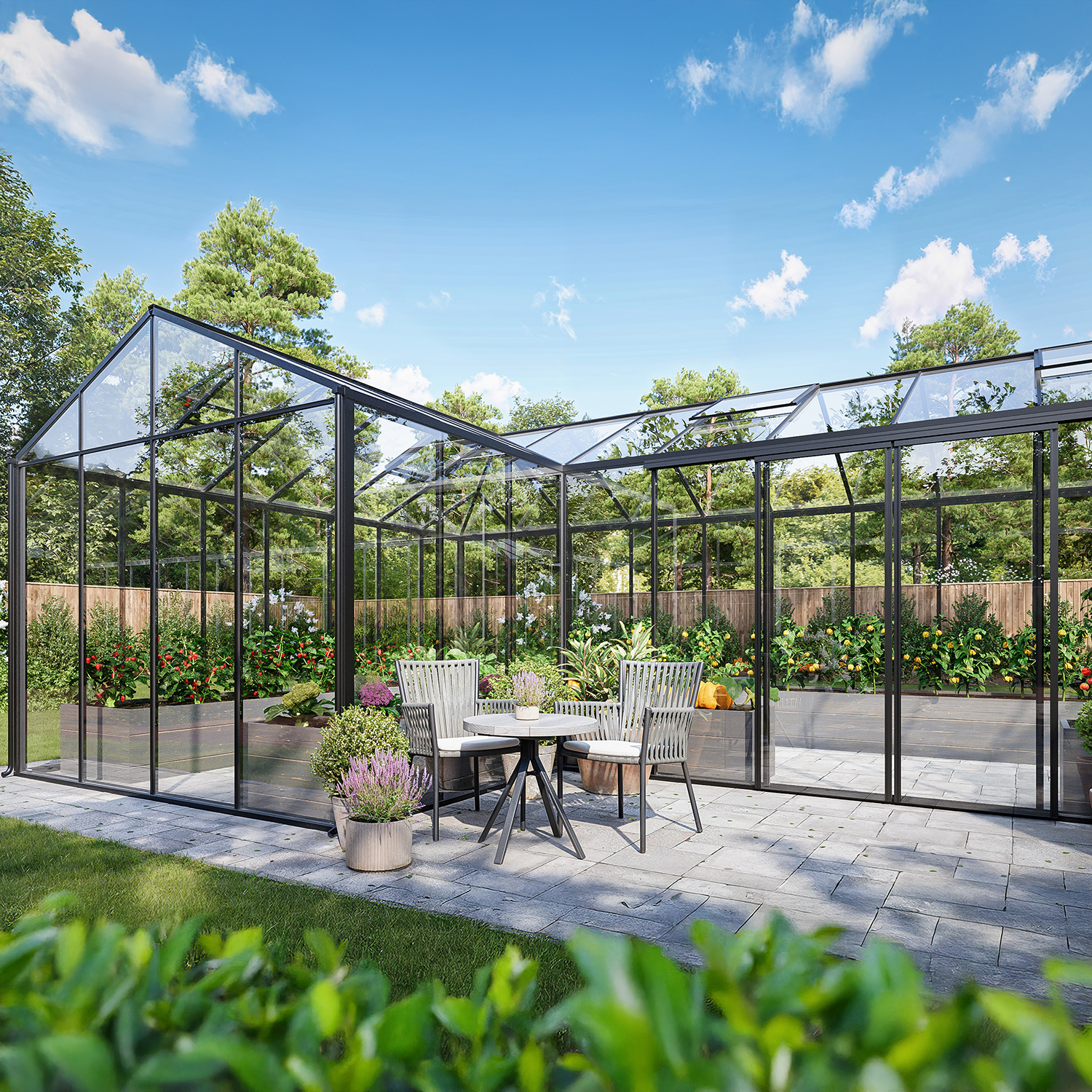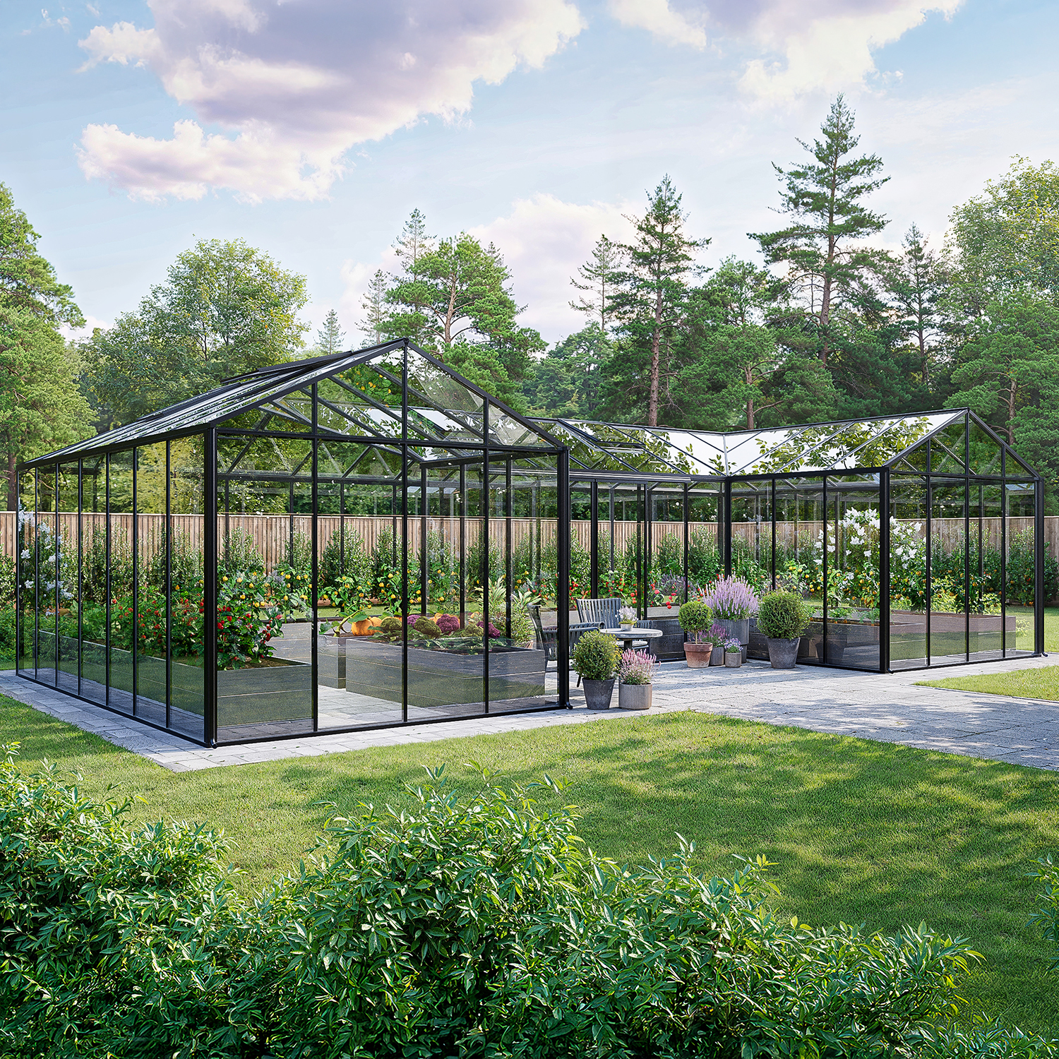 Öll gróðurhús frá Bloomcabin eru úr sterkun álprófílum og fást með  pólýkarbon ylplötum eða með hertu 4mm gler.  Lagerlitur er svartur Ral 9005 en möguleiki á allt að 34 mismunandi  RAL litum. Úrval útfærslna eru í boði svo sem einfaldar eða tvöfaldar rennihurðar, geymslupláss, accoya viðarklæðning, svart gler eða speglagerl, auka styrkingar osfr, osfr.
